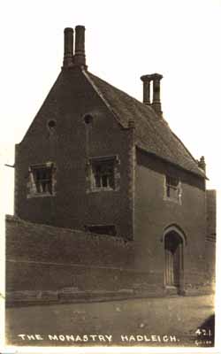 Place FarmLady Lane, HadleighAnyone recently passing along Angel Street towards Lady Lane will have noticed the building activity at the corner of Aldham Road and the bus stop layby in Lady Lane. This site, once part of Place Farm, but popularly locally known as The Monastery, is full of legends and mysteries. Until recent years, just into Aldham Road was the Monastery Garage and Monastery Stores, demolished in 1995 and now all built upon. No documentary evidence for a religious establishment exists, except from a Latin translation of the will of Aethelfleda of 991 which referred to a monastery at Hadleigh, and quoted in Dugdale’s ‘Monasticon Anglicanum’ of 1846.