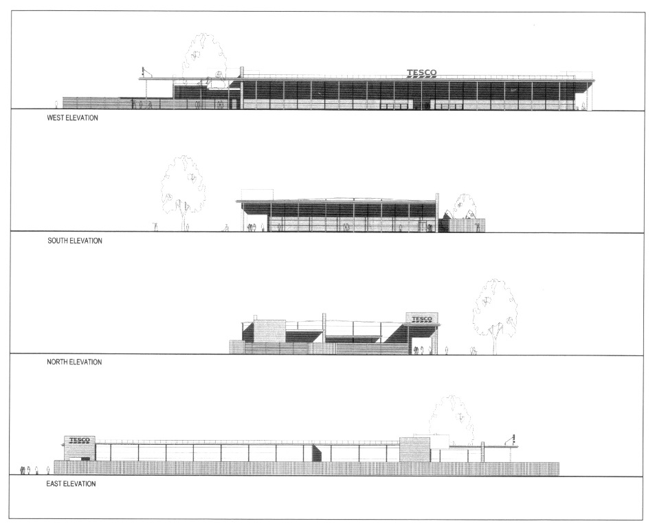 The Tesco Planning ApplicationThe applications were advertised in the East Anglian Daily Times on Tuesday 3rd February and letters of objection should be in within 21 days of that date, i.e. 24rh February. Your committee is working on a detailed list of objections. The Society will be writing to all Babergh Councillors on the subject and we will keep you up to date with any action we take, but your support is vital if we are to keep Tesco off the riverside site and protect the environment of our town. Please remember there are three applications, so please send a letter for each of the application references, to the Planning Department at Babergh District Council, Corks Lane, Hadleigh. Documentation is available for viewing on weekday at the Babergh District Council Offices (9-5) and Hadleigh Town Council (930-1230)-. The site for the store itself is the same as the 1999 application, the store area being 2618 sq metres, the store and service yard stretching from the edge of the current Brett Works buildings to the back of the Cinch lands. Between the store and the river is the parking for 202 cars and a small planted area between the car park and the river. The total area of the site, excluding the Dawson site, textile building and access road is 5.91 acres or 2.39 hectares. These are the application numbers for the proposals as they stand at the moment. The case officer for these proposals is Martin Price. Tesco Planning application.Application No: B/03/02170/FUL Location Former Brett Works (Pound Lane), land rear of 109 High Street, Part O.S.3371, Part Babergh District Council car park and part Bridge Street allotments. Proposal Erection of Class A1 food store with associated landscaping, service yard and car parking, access to Bridge Street through Babergh District Council car park – Scheme 1. Application No: B/03/02171/FUL Location Former Brett Works (Pound Land), land rear of 109 High Street, Part O.S. 3371, Part O.S. 4373, Part curtilage of Greenways (No 7), No. 9 and Part curtilage of No. 11 Bridge Street, Hadleigh. Proposal Erection of Class A1 food store with associated landscaping, service yard and car parking, access to Bridge Street between Nos. 3 and 11 ( No. 9 to be demolished) – Scheme 2. Application No: B/03/02172/CAC Location 9 Bridge Street, Hadleigh, Ipswich, IP7 6BY Proposal: Application for Conservation Consent – Demolition of dwelling and garage. The document on the design of the store is titled Interim Design Statement and the design appears to be one of Tesco’s standard designs. The design of the store is an oblong building approximately 7 metres high. The front and southern end is made of glass panels set in steel frames, the steel work to be clad in crisp white. A slightly shallower steel canopy extends over these two sides supported by steel columns. The service yard is surrounded by cedar panelled fencing. The roof appears to be almost flat, (a 2° gradient) to be painted grey in a non reflected roof colouring to ‘tone down the impact when viewed from the very limited number of higher vantage points (e.g. the Church tower)’ Above the roof level on the North and West sides of the building are large Tesco signs, presumably illuminated but not identified as such. At the entrance to the site in Pound Lane is a plain wall with Tesco on it. Rendered walls on the North elevation of the service yard, and the ‘freestanding arched bookend at the north west corner of the building, terminating the shop front and drawing the eye to the corner of the building should be rendered to reflect local vernacular and coloured in a suitable pastel shade’.